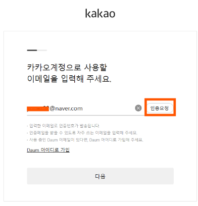 이제 순서대로 천천히 따라 해 보세요. 헷갈리시면 안 되는 게 티스토리 사이트가 아니라 다음 사이트에서 카카오계정 로그인을 클릭해 줍니다.