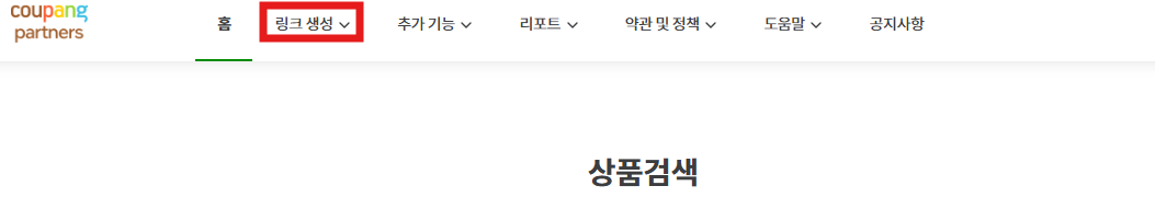자, 이렇게 쿠팡 파트너스 가입하기는 완료 되었는 데요. 이제는 판매에 필요한 링크 생성을 진행해 보겠습니다. 쿠팡파트너스의 홈으로 돌아가서 상단에 있는 링크 생성을 클릭> 간편링크 만들기로 가셔서 링크생성 버튼을 누르면 됩니다.