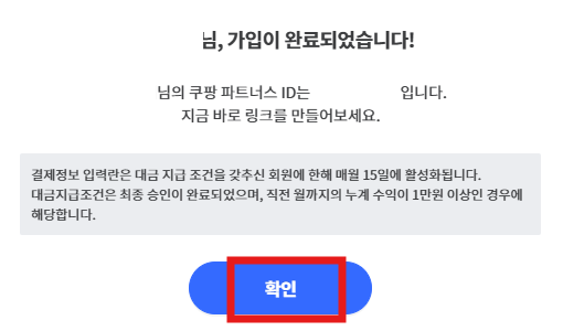 이렇게 하면 쿠팡파트너스를 시작하기 위한 기본적인 세팅은 완료되었다고 보시면 됩니다.