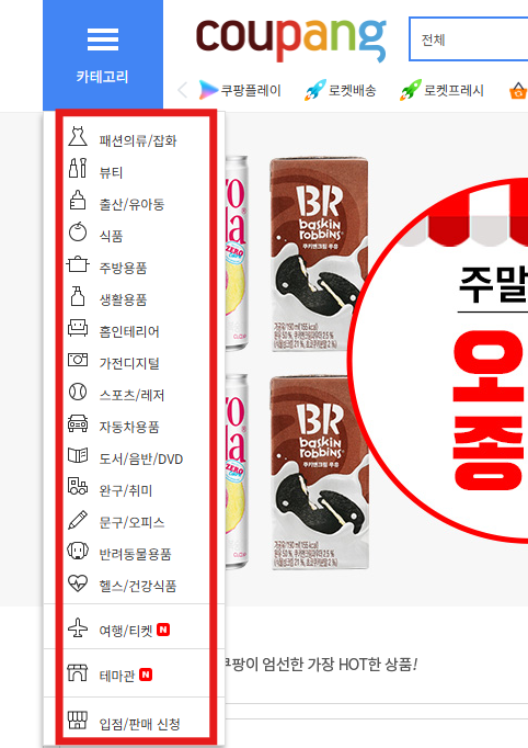 가입을 했으니 판매를 위한 블로그를 세팅해야겠죠? 먼저 주제를 정하기가 어려우니 쿠팡에 가서 어떤 카테고리로 할지 잘 보고 선택해 주겠습니다. 수익은 카테고리에 따라 다르다고 하는 데요. 가전제품이 단가가 가장 높다고 하던데, 일단 초보니까 저는 생활용품이나 주방용품 위주로 진행해 보려 합니다.
