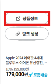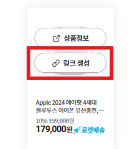 쿠팡파트너스 홈페이지로 돌아가서 맨 처음 클릭했던 상품 정보 말고 링크생성 버튼을 선택해 주세요.