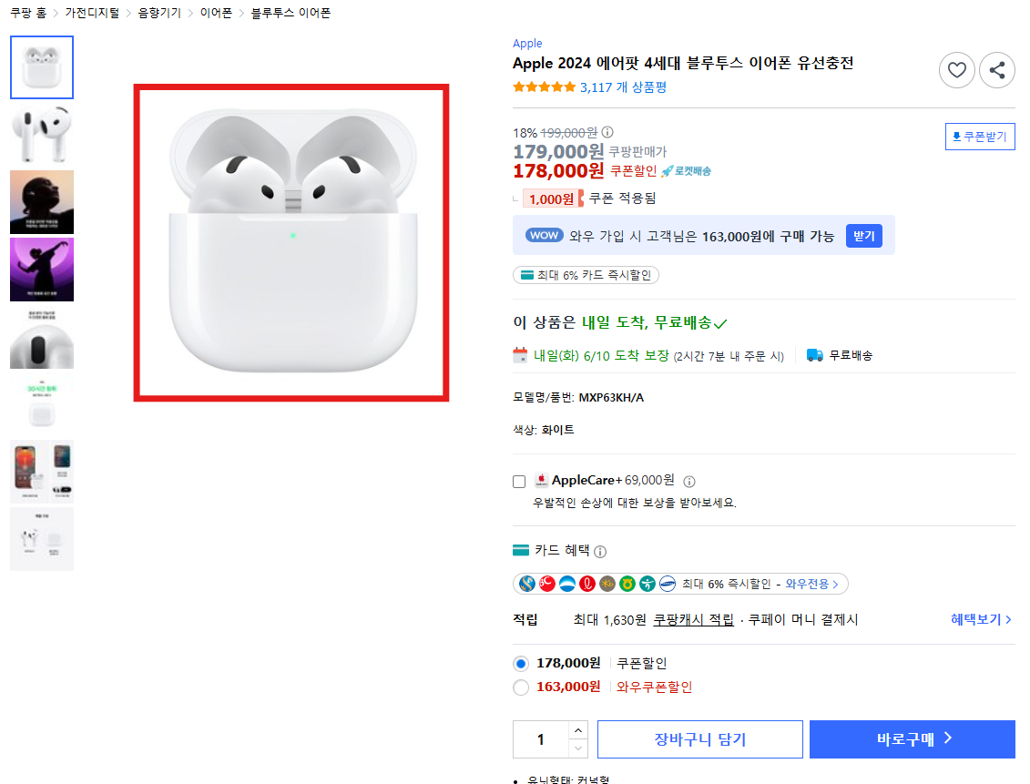 쿠팡파트너스 홈페이지에서 저는 에어팟을 검색하고 시선이 갈 만한 이미지를 선택해 보겠습니다. 이미지 위에 마우스를 가져다 두면 이렇게 상품정보라는 글씨가 뜨는 데요. 이곳을 선택해서 들어가 주세요.