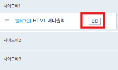 편집을 누르고 이름을 사이드 배너라고 작성해 주고 html코드를 한 번더 붙여 넣기 해줍니다.