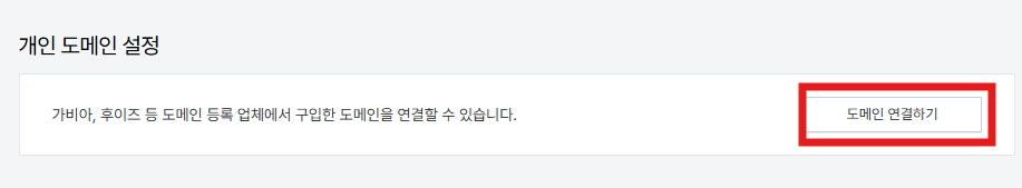 스크롤을 좀 내리면 도메인 설정하는 칸이 나오는 데요. 여기서 도메인 연결하기를 선택해줍니다.