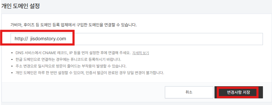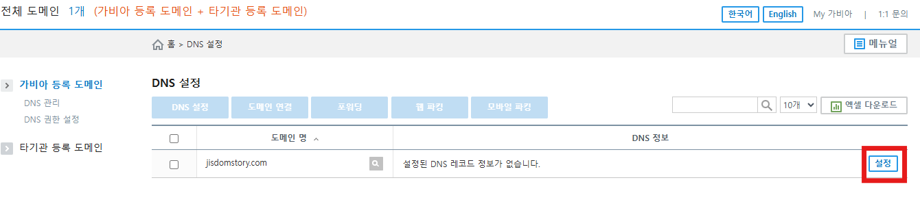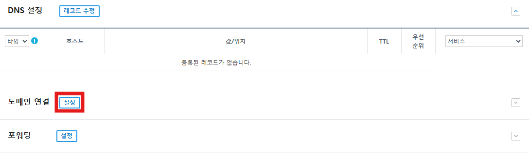 도메인 연결 옆에 설정버튼을 눌러줍니다.